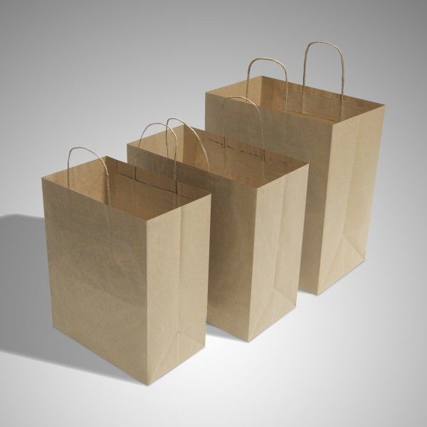 Bolsas en papel kraft con asas de papel retorcido. Bolsas en papel reciclable, 100% ecológico.