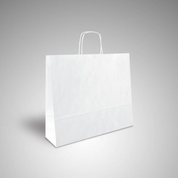 Sac en papier kraft blanc avec poignées torsadées. La ligne COLORIS est fonctionnelle et de bas prix et donc la favorite dans tous les secteurs. Disponible en plusieurs couleurs et formats. Sacs en papier recyclable, 100% écologique.